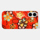 STYLIZIERTE BLUME, SCHWARZ-WEISSE RIBONS, HELL ROT iPhone 16 HÜLLE