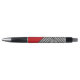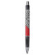 Design géométrique abstrait simple avec rayures noires et blanches et décoration triangulaire rouge