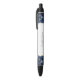 Commémorez votre journée spéciale avec ce stylo élégant, avec les noms de la mariée et du marié dans le script d'écriture au fusain gris avec la date mariage ci-dessous en police cuivre sur un arrière - plan blanc. Une aquarelle bleu marine design d'agate découpée avec une parties scintillant en faux or encadre le texte en haut et en bas du stylo.