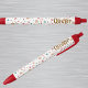 Cute white, red-trim blue-ink pen with peppermint candy cookies holiday pattern and name printed in brown. Easily change, add to or remove the name to make it yours using the Template provided. Choose ink and trim color. Minimum purchase of 2. See "About This Product" for more information. Made in U.S.A.