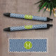 Stylo Noir Chevrons bleu marine et vert citron Monogramme per