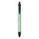 La ligne supérieure du texte d'affichage est un élégant script noir sur ce stylo vert menthe. Vous pouvez remplacer le texte d'affichage par un message personnalisé tel que le nom de votre société et le numéro de téléphone. Le stylo est vert menthe. Le texte est noir. Ce stylo promotionnel n'a pas de minimums.