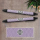 Stylo Noir Motif pourpre et gris Chevron avec Monogram