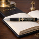 Élégant et professionnel or et noir Votre nom de groupe d'église stylo d'église pour votre congrégation et vos efforts de marketing. Il est conçu avec un motif métallique or élégant et une bordure noire moderne.
