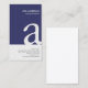 Un design simple, élégant et professionnel de carte de visite d'enseignant substitut avec la partie supérieure avec un arrière - plan bleu marine. Votre lettre de monogramme apparaît dans une grande police qui s'écoule dans une partie inférieure de la carte qui n'est pas blanche. Votre nom et vos coordonnées apparaissent sur le côté droit de la carte. Le design simple et élégant crée une image très contrastée qui est puissante et professionnelle. Parfait pour graphisme, professionnel, design, élégant, sérieux, éducation, école, tutorat, mentorat, thèmes étudiants. Customisez-le immédiatement avec votre nom et vos coordonnées.