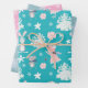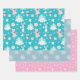 Schöne Pastel Weihnachtsverpackungspapiere mit individualisierbarem Text. 3 verschiedene Blätter. Türkis, Rosa und Siegel blau