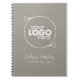 Elegantes und klassisch personalisierbares White Script Schriftart Notebook mit individualisierbarem Logo. Subtile Imitate Stoff Textur graue Leinenstruktur. Einfaches Minimaldesign