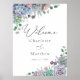Bienvenue à votre mariage avec cette belle affiche, avec des succulents violets et verts et de la verdure. Ajoutez les noms du couple et la date du mariage à l'aide des champs fournis.