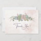 A wedding thank you card with succulent bouquet in green and blush