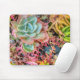 Eine Mausunterlage, die ein buntes Bild von Succulents kennzeichnet.