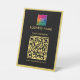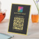 Individuelles Hochladen Ihres Firmenlogos hier QR Code Gold Text Elegant Moderne Vorlagenbüros & Schule / Werbeprodukte & Kleinunternehmen Lieferungen / Marketing Materialien / Zeichen / Mich Menus & Preislisten / Black Pedestal Sign.