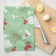 Rouge et vert et blanc Noël / serviette de cuisine de vacances avec un imprimé de sucres de canne rouges et blancs et saint sur un arrière - plan vert menthe.