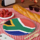 Dieses Design zeigt die Nationalflagge Südafrikas (offiziell die Republik Südafrika), das südlichste Land Afrikas. Etwa 80 % der Südafrikaner sind aus schwarzafrikanischer Herkunft, während die übrige Bevölkerung aus großen Gemeinschaften europäischer, asiatischer und multirassischer Herkunft besteht. Südafrika hat drei Hauptstädte Städte: Führungskraft Pretoria, Justiz Bloemfontein und Legislative Kapstadt. Die bevölkerungsreichste Stadt ist Johannesburg; andere Großstädte sind Durban, East London, Pietermaritzburg, Port Elizabeth, Soshanguve und Vereniging. Südafrika wird oft als "Regenbogennation" bezeichnet, um das multikulturelle Diversity des Landes zu beschreiben, insbesondere im weck der Apartheid.