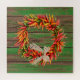 Dieses Design verfügt über einen bunten Chile Pfeffer ristra Kranz mit einem Raffenbogen an einer rustikalen, verwitterten grünen Holztür in einem alten Lehmhaus gebunden. Das Originalgemälde wurde von den Chilen Ristras und Kränzen inspiriert, die die Künstlerin an ihrer Zuhause in New Mexico aufgehängt hatte. Ristras sind ein Symbol der Begrüßung gesagt, um gute Gesundheit und viel Glück zu bringen. Artellus Artworks™ bietet originale Kunst und Designs (keine Clipkunst oder A.I.), die urheberrechtlich geschützt sind und eine versteckte Signatur enthalten. Artellus Artworks™, Marilynn Flynn, Zazzle und Zazzle Affiliates und Zazzle Referrer sind die einzigen autorisierten Verkäufer von Artellus Artworks™ Designs. Kopieren Sie nicht.