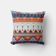 Kissen werden von einem kühnen südwestlichen Muster in blauen, orangefarbenen und roten Formen geworfen. Für die Dekoration im boho- oder südwestlichen Stil. Mix und passend zu anderen Mustern oder auf einem soliden Farbsofa oder Stuhl als akzentuiertes Kissen.