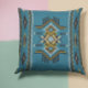 Ein großes, blau, gelb und schwarz-südwestliches Kissen für das Land- oder Kabinendekor