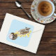 Ein niedlicher Zuckerflieger, der auf einem Baumzweig sitzt, mit kleinen gelben, rosa und weißen Blume. Der Segelflugzeug und die Blume sind alle in einem Tätowierungsstil gezeichnet, in einem blauen Hintergrund