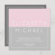 Faire-part de mariage moderne rose sucre et gris acier avec un champ de modèle texte au verso pour vous d'ajouter tous vos détails supplémentaires. Pour les éléments correspondants, les modifications personnalisées modifient le concepteur de contact LeahG. Beaucoup de types de stock de carte disponibles, y compris texturé, s'il vous plaît voir la liste pour assurer votre entière satisfaction.