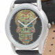 Menschliches Schädelbild, das durch die Kombination von abstrakten Formen und Mustern in verschiedenen Farben entsteht. Mexikanische Zuckerkunst. Tag der Toten Tradition Mexikos Das Bild erinnert an Erinnerungen von Blume-Power oder Hippie-Kultur oder Rockstar-Gotik-Bilder.