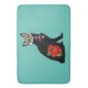 Eine schwarze Katze mit einem Tag des toten Zuckerschädels bildet sich in einer aquamarinen Kulisse auf.