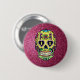 Ein heller und farbenfroher Sugar Skull-Button, der getragen werden kann, um den Tag der Toten zu feiern und nur zum Spaß an jedem Tag des Jahres getragen werden kann.