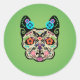 Sugar Skull Frenchie - Green Runder Aufkleber