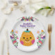 Diese niedliche und farbenfrohe Babydusche-Party-Platte ist zum Thema "Tag der Toten" oder "Dia de los Muertos" gestaltet, das sich perfekt für ein Halloween- oder Herbstfest eignet. Ein kleiner Kürbis wird in der Mitte abgebildet, und ihr Gesicht erinnert an einen Zuckerschädel. Farbenfrohe, blumengeschmückte Elemente im Paisley-Stil prägen die Grenzen.