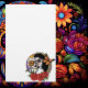 Hinter einer Frau, die den Tag des toten Zuckerschädels trägt, schluckt sich ein Zuckerschädel. Jugendstil.