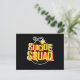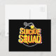 Das Logo der gelben und orangefarbenen Suizid-Squad in einer schwarzen Bombe auf weißem und schwarzem Hintergrund.