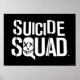 Schwarz-Weiß-Suizid-Squad-Logo mit einem Schädel im Buchstaben Q. Weiße Buchstaben auf schwarzem Hintergrund.