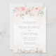 Une faire-part de mariage rose vif peinte à l'aquarelle avec des roses rose vif et une verdure à l'eucalyptus argenté avec arrière - plan d'aquarelle rose vif.