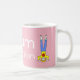 Rosa Tasse mit der Meldung 'Mum in a Million' in weißen Buchstaben. Hat Cartoon einer Mutter, die blaue Jeans trägt, und ein gelbes T-Shirt mit einer roten Blume auf stehenden auf ihrem Kopf. Personalisieren Sie diese Tasse einfach, indem Sie den Vorlagentext bearbeiten. Großartiges Geschenk zum Geburtstag oder Muttertag. Sehen Sie sich meine passende Muttertagskarte in meinem Geschäft an. Danke, dass du mir meine Designs angesehen hast!