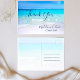 Eine sommerliche Strandlandschaft. Blaues Wasser und weißer Sand mit den Worten Dankeschön, dass für einen Namen geändert oder entfernt werden kann . Ändern Sie einfach die Vorlage in Ihre Informationen. Sehen Sie die Sammlung über den Link auf der Seite.