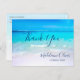 Eine sommerliche Strandlandschaft. Blaues Wasser und weißer Sand mit den Worten Dankeschön, dass für einen Namen geändert oder entfernt werden kann . Ändern Sie einfach die Vorlage in Ihre Geschäftsinformationen. Sehen Sie die Sammlung über den Link auf der Seite.