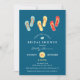 Cette invitation colorée et moderne est idéale pour fêter une douche nuptiale sur le thème de la plage. Il dispose de trois paires de tongs de différentes couleurs. Une forme solaire et une petite coquille apportent une touche de design séduisante. Cette carte est parfaite pour les mois d'été, un mariage à la plage ou un mariage de destination.