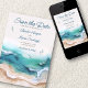 Ein elegantes und sommerliches Design für Ihren Strand oder Ihre Hochzeit in Urlaubsort! Die abstürzenden Wellen und Seevögel und das moderne Drehbuch geben ihnen die perfekte escapistische Touch für das bestste Abenteuer Ihres Lebens. Ideal für eine Hochzeit in Urlaubsort in Mexiko. Bestellen Sie Ihre gedruckten Einladungen und Party oder laden Sie Ihre digitalen Einladungen jetzt für einen Tag, den sie nie vergessen werden!