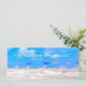 Beach scene illustration with blue skies, sandy shores, and relaxing beach chairs - perfect for retirement party celebrations. Inspired by a Mediterranean beach photo, this painterly design captures the relaxed coastal lifestyle of retirement. Ideal for honoring someone's transition to a life of leisure, travels or beach living. Customizable with name and personal text. Great for beach-themed retirement celebrations and seaside party invitations.