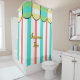Summer Cabana Turquoise Coral Yellow Stripes Duschvorhang