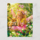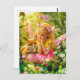 fröhliche Feenkneels neben einem kleinen Fuchs in einem üppigen Sommerwald. Eine lebendige pastellfarbene Kreideillustrierung voller Leben und Magie.