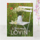 Adorable und bearbeitbare Grußkarte Design mit schönen Sommer Motiv. Der Sessel aus weißem Holz ist im Sommer mit einer Vase mit weißen Kamillenvasen versehen. Pfeffer um den Stuhl herum. Viel Spaß! © Fotografie von UtART 2017