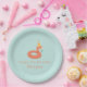 flamingo pool float . modern. birthday party. pool party. summertime. pool time. personalized party products supplies. Happy Birthday personalized custom name Paper Plates. Party products & supplies
