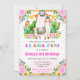 Eleganter Aquarelllama mit Wüstenkaktus-Pflanze mit rosa, orangefarbenen und gelben Sommer-Blume, Goldrahmen und Goldfass-Glitzer-Konfetti mit rosa Streifen Hintergrund