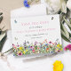 Bohemisch, modern und sommerlich präsentiert sich diese Ankündigung Datum freihalten Postkarte mit einem farbenfrohen Feld von Wildblumen mit Schmetterlingen, Hummeln und Ladybugs. Sie können alle Text- und Grafikplatzierungsdetails an Ihre spezifischen Anforderungen anpassen.
