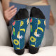 add summer vibes to your clothing with this cutesocks featuring summer fruits pattern with ice cream, popsicles and tropical leaves as banana, watermelon, pineapple, ice cream ,popsicle, palm leaves and monstera leaves.