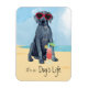 Es ist das Leben eines Hundes! Sei cool und feiere die Sommertage mit diesem niedlichen Welpe aus Great Dane, der eine Sonnenbrille trägt und sich bei einem Drink am Strand entspannen kann.