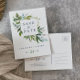 Cette verdure estivale à la différence de la date annonce carte postale est parfaite pour un élégant mariage du milieu de l'été. Le design botanique présente un agencement luxuriant d'eucalyptus couleur aquarelle peint, de verdure et de feuilles verts avec de subtils ressorts de fleurs roses rousses.