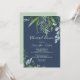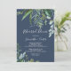 Dieses Sommer-Grün Marine Probe Dinner Einladung ist ideal für eine elegante Mitte-Sommer Hochzeit-Probe. Das botanische Design besticht durch eine üppige Anordnung von gemalten Aquarellnuancen, Grünpflanzen und grünen Blätter auf marinebasischem Hintergrund.
