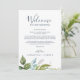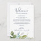 Diese im Sommer grün gehaltenen Begrüßungsbriefe und Karten für die Tour sind ideal für eine elegante Hochzeit im Sommer. Das botanische Design besticht durch eine üppige Anordnung von gemalten Aquarelleukalyptusfarben, Grünpflanzen und grünen Blätter mit subtilen Blumenzwiebeln in Rosa. Auf der Vorderseite der Karte befindet sich ein Begrüßungsschreiben, auf der Rückseite der Karte befindet sich der Hochzeitstag. Diese Noten sind ideal für Hochzeiten in Urlaubsort und Begrüßungstaschen für Hotelgäste.