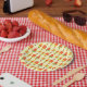 Niedliches digitales Wiederholmuster von Eislollen in leuchtenden Sommerfarben auf farbenfrohen Party-Tellern.