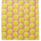 Ein Muster aus frischen und saftigen Zitronenschnitzen in lebhaften, lebhaften Gelbtönen, mit einer Aquarellstruktur, die ihm ein frisch geschnittenes Aussehen verleiht. Sie sind auf einem lachsfarbenen Hintergrund platziert, um einen hellen und sommerlichen Look zu erhalten, wie eine rosa Limonade.